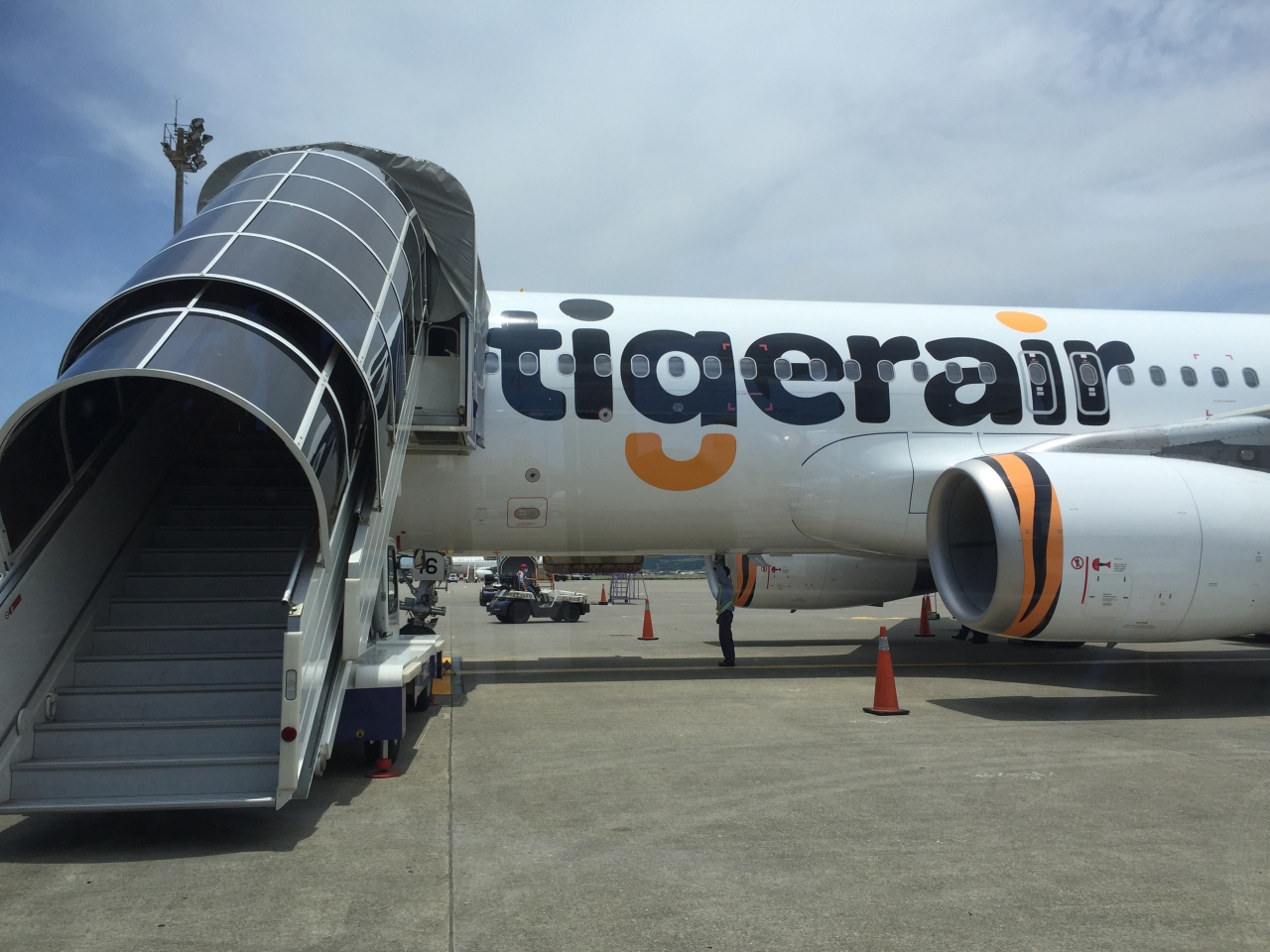 初めてタイガーエア台湾に搭乗しました。関西空港でのチェックインカウンターは一番端のHでした。荷物はすべて重量チェックされタグをつけられます。機内は他のLCCと変わらず。機内持ち込み飲食は禁止とアナウンスありましたが注意されている方はいませんでした。