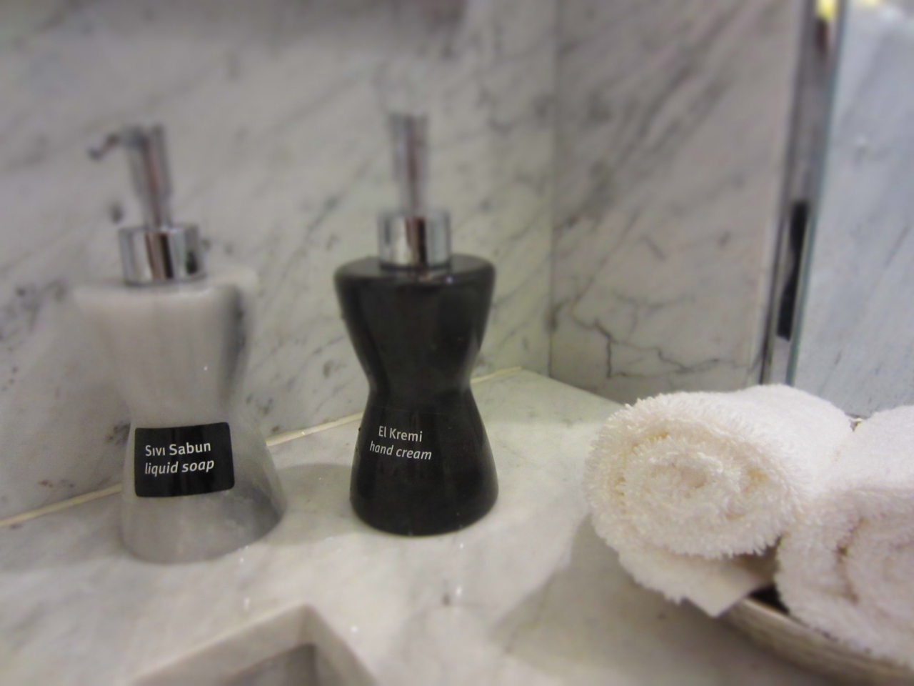 イスタンブールのビジネスクラスラウンジの素晴らしさはもうあちこちで語られていて、まったく同感です。シャワーブースも都会の最も先進のホテルのバスルームのようなリッチさ。バスタオルも豊富に使えてアメニティも高品質で、このラウンジを上手に活用するためには乗り継ぎ便をひとつ遅いものに変えてもいいほどです。