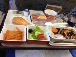座席にモニターがないので、ヘッドホーンで音楽を聞くか、アルコールを飲むくらいかです。行きはビールと、ワイン、ウィスキーを頂きました。