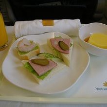ベトナム国内線、ビジネスクラスを利用しました。ダナン空港ではビジネスクラス用のチェックインカウンターで並ばずにチェックイン、国内線でもビジネスラウンジが利用できました。行きのダナンまでの便はシェルフラットシートでしたが、帰りの今回の機材は古めで、シートは普通にリクライニングするものでした。夕方便でしたが、食事は簡素な軽食のみでした。