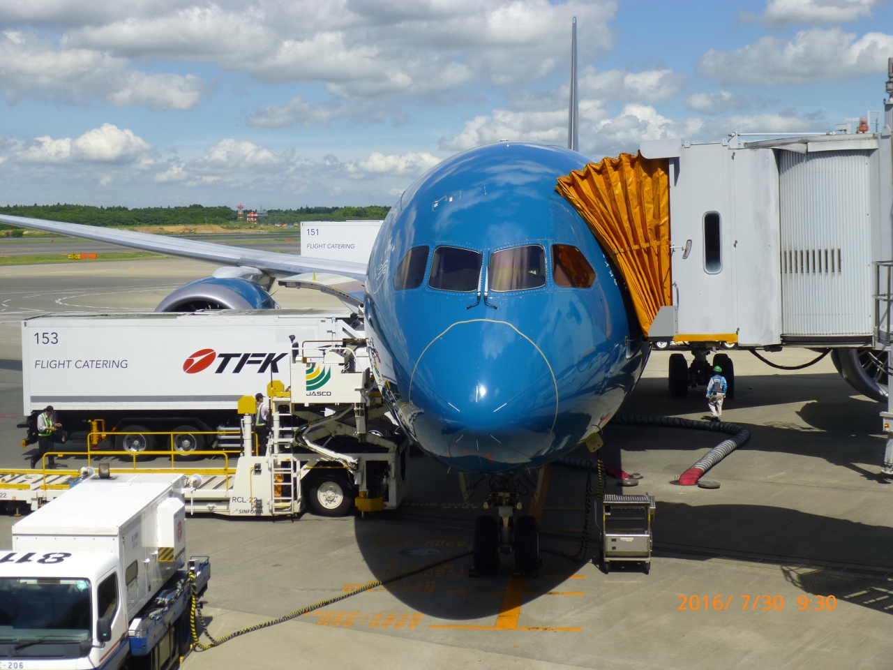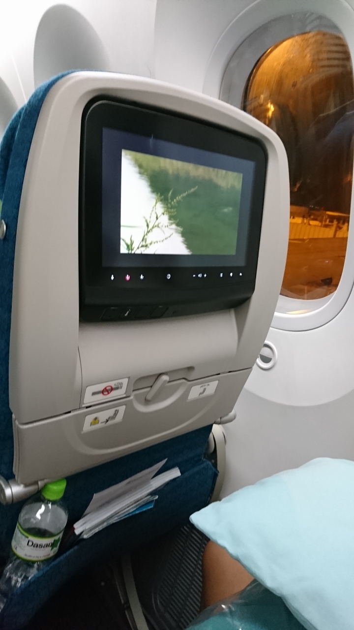 ベトナム空港のB787に乗りたかったので・・成田からのブランケは使いまわしだった。ホーチミンから人が使ってきたのをたたみました。って感じです。
