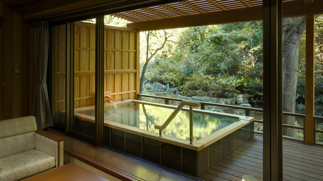温泉付のお部屋でゆったりとお過ごしいただけるよう夕食と朝食をお部屋にお届けいたします。日本百名湯にも選ばれている名湯「修善寺温泉」のいで湯が お部屋でお楽しみい... もっと見る