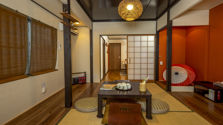提灯を模した照明、茶器や備品をすっきり収めた「道具箱」兼用テーブル。簡素な道具に... もっと見る