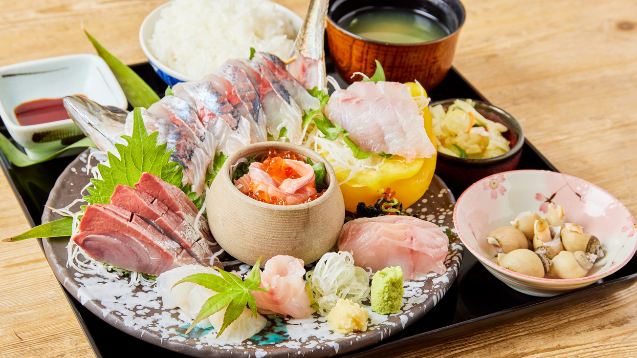 佐渡沖で水揚げされたばかりの新鮮な魚、豊かな土壌で育まれたお米や野菜、果物など佐渡産を中心に、旬の食...