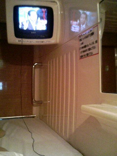 カプセルは、近隣の「グリーンプラザ新宿」より広め。またTVにはイヤホンが備え付けられているので、隣からの音漏れに悩まされることがない。ただし、TV本体でのチャンネル・音量操作になる(寝ながら操作できない)ので、面倒だと思う人はケータイ(赤外線通信対応)をカプセルに持ち込み、「リモコンアプリ」で操作するとよい。