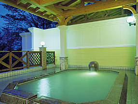 風呂は内湯も露天も洋風できれい。貸し切りもOK。