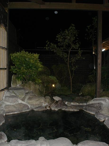 露天温泉は大人8人が入って一杯くらいだが、月が正面から上がって来るのを眺めながら入れて開放感があって良かったです。