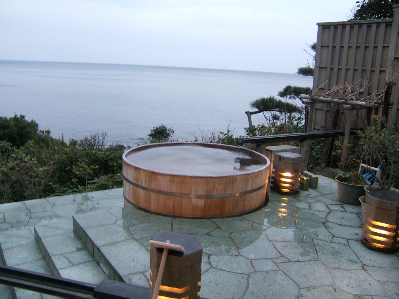 開放感あふれる露天風呂は本当に気持ちよかった。海を目の前に眺められるお風呂になっています。船が近くを通ると、船員さんの顔が見えるのではっていうくらい近い感じがします…。