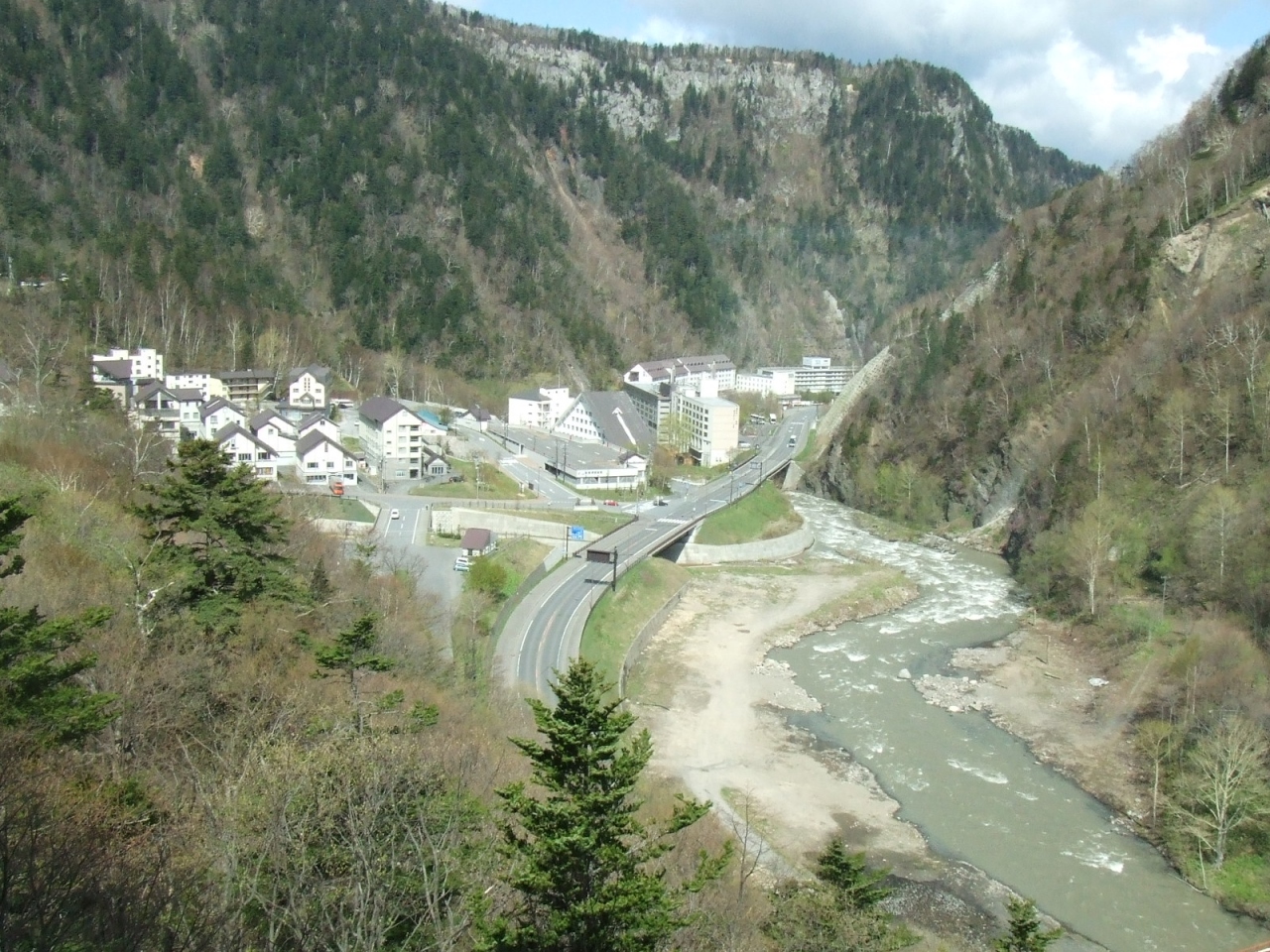 宿泊日の大浴場からの景色は、層雲峡の全体が見えすばらしい。私、女性です。ですから、次の朝は男性です。女性は、景色が浴場から見える明るい時間に着くといいです。姉妹ホテルの大浴場にバスが、出てます。行きましょう。