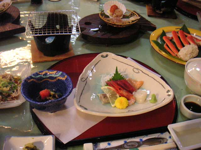 料理は魚系が強い旅館だけあって、ほとんど魚料理。でも、昔訪れたときよりも味がよくなかったです。朝食も、質素な感じでした。