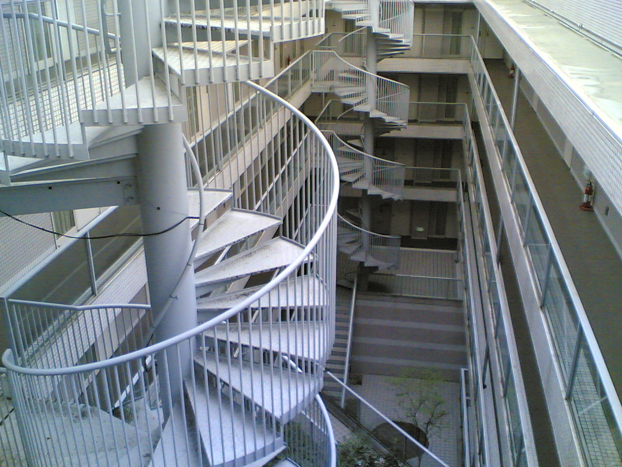 建物は中庭を囲むように部屋が並んでおり、中庭への非常用螺旋階段がある、落ち着いた雰囲気です。