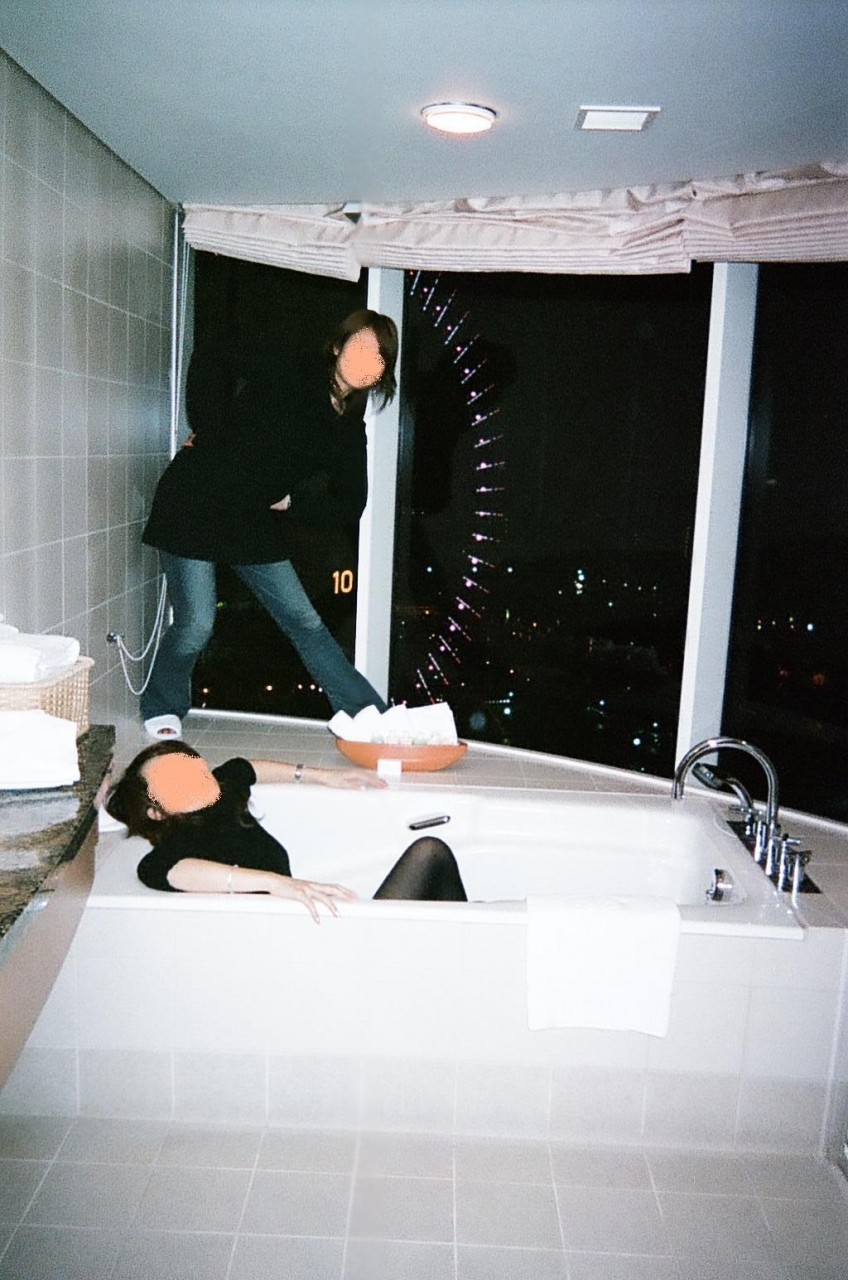 エキストラベッドではなく普通のベッドが3つ入っていてお風呂から観覧車が一望出来ます。