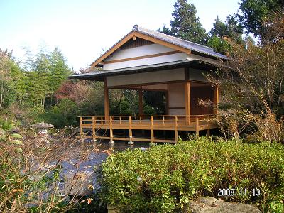 お庭にはお能の舞台があり、お庭から由布岳が見えます。
