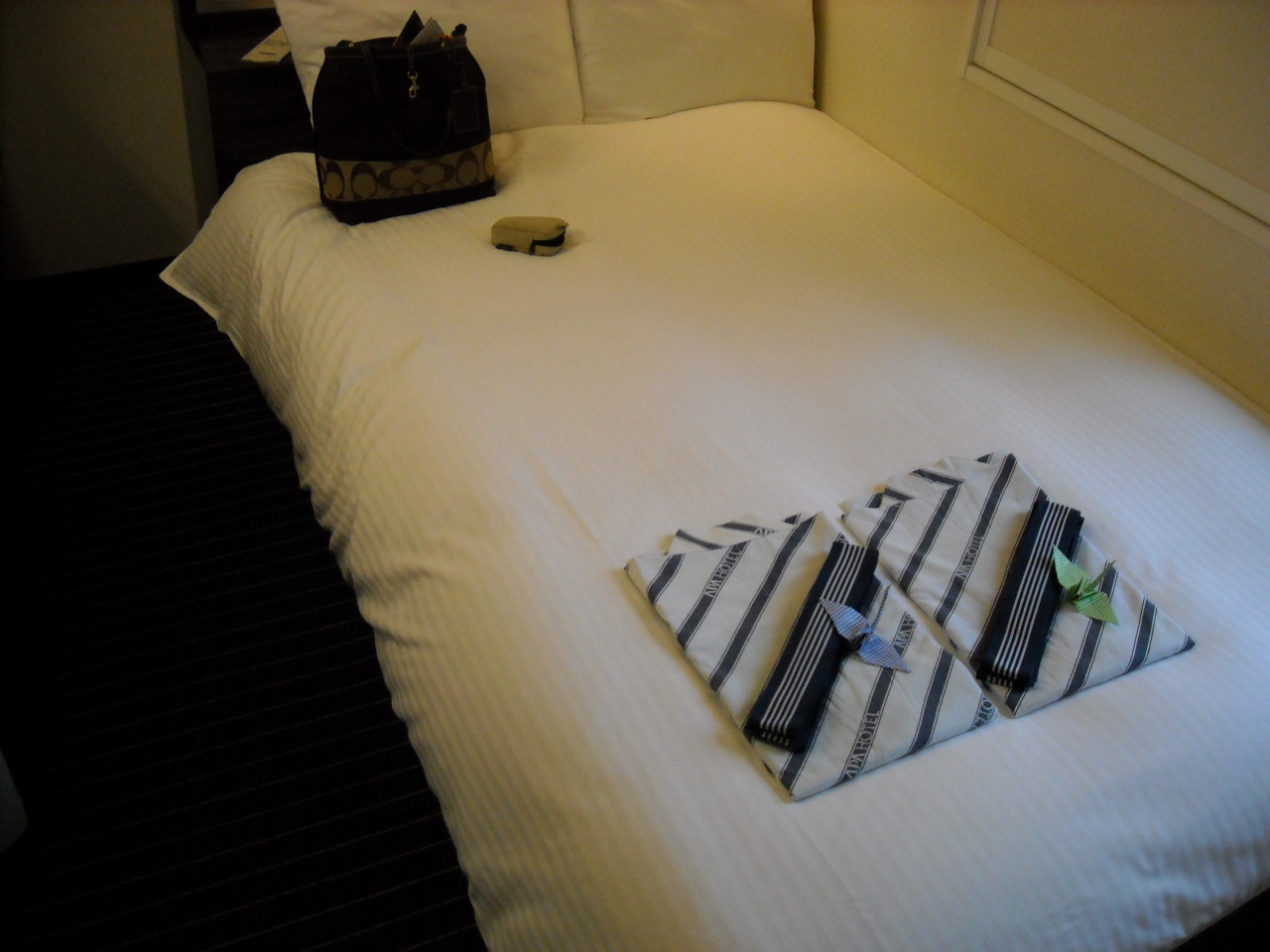 今回のプランはカップルセミダブルプラン。部屋は驚くほど狭かったです。ただし、一晩寝るだけ、次の日も朝早く出発する私たちにはあまり問題にはならなかったです。狭い分お値打ちでしたし。