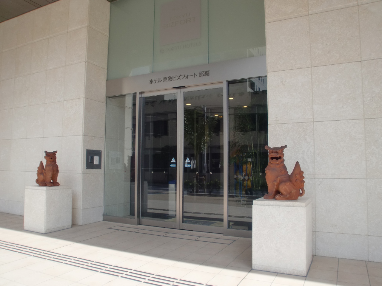レンタカーのナビに入ってなくて、なかなか入口が見つけられなく探しました。大通りから、1本中の裏道にひっそりシーサーがあってそこが入口で、エレベーターで4階に上がったところにチェックインカウンターがありました。