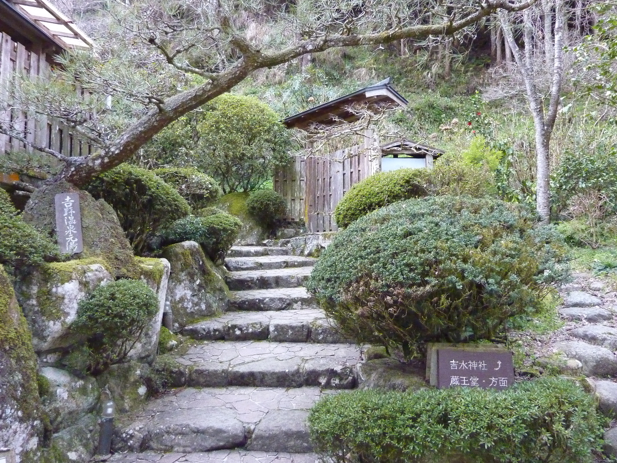 ガレージ横を通るのでちょっと雰囲気が…に。吉水神社の方から