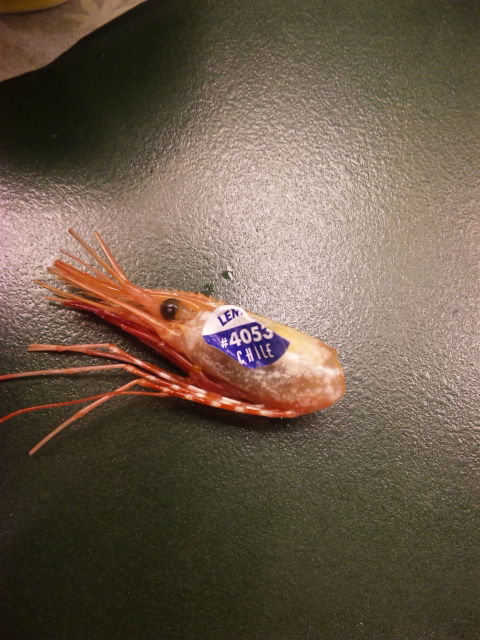 エビの刺身には 「CHILE」と書かれたシールがついている。