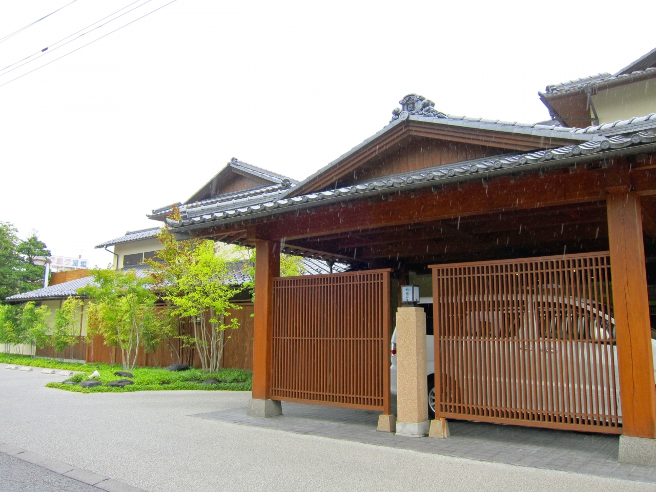 民家の間の狭い路地を入った一角に、真新しい料亭風の佇まいの建物。