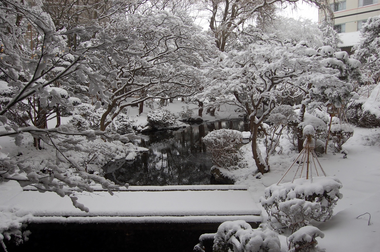 (海岸までは住宅街があり遠くに津軽海峡と函館山が望める程度)かえって中庭のほうが雪吊りが施され情緒がありました。(元々の敷地は二千坪のお屋敷で半分が大正時代のまま庭として残っています。)部屋は和室だけのタイプと洋室の奥に和室がついたタイプがあります。部屋の風呂はユニットで狭いですが温泉に入るので不自由は感じませんでした。お風呂は1Fと11階にありますが1Fはほとんど貸切で使えないようでした。