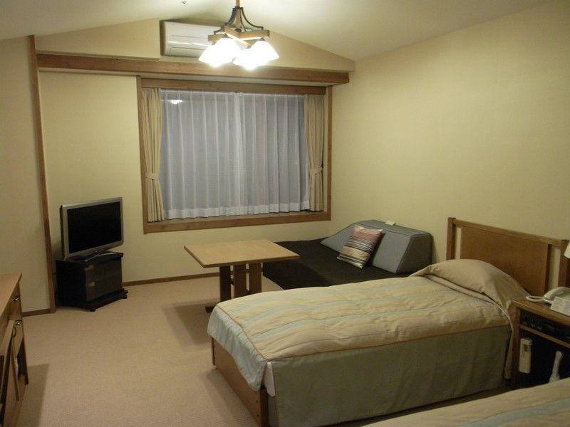 部屋は、シングルベッド2台・ユニットバス・液晶TV・冷蔵庫・お茶・ポットなどなど。