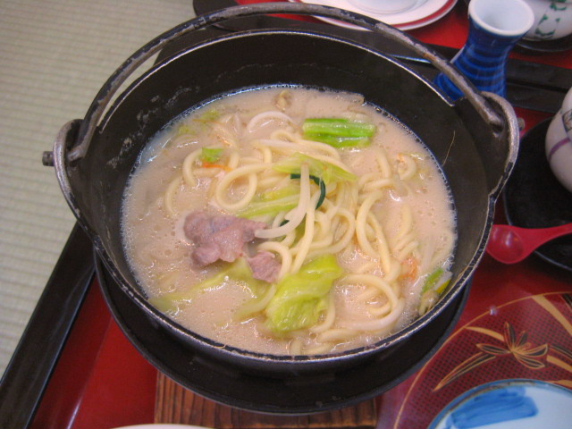 お鍋の中身はチャンポンでした\(^O^)/長崎と言えばチャンポン。是非食べたいと思っていたので、感激でした(^∧^)