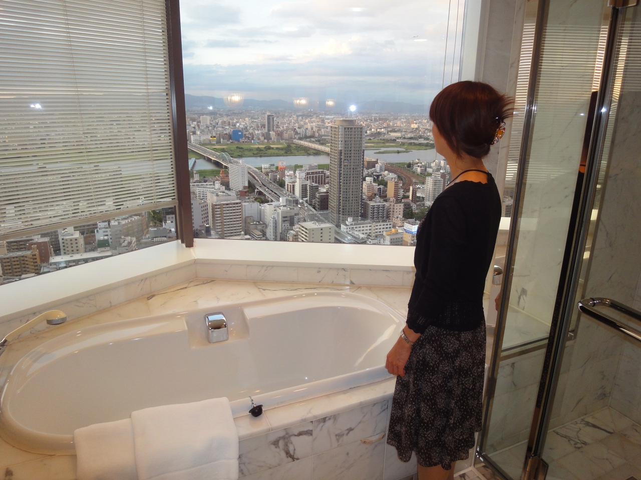 このバスから眺める夜景は最高です!彼女も大満足で、何度も一緒にお風呂に入りました。部屋も綺麗で清潔。何も不満な点はありません。強いて言うなら、梅田駅から少し歩くことかな。それにしても開業当初に友人が「このホテルに彼女連れて行ったら喜ぶよー」って言っていたことが痛感できました。本当にお勧めです。