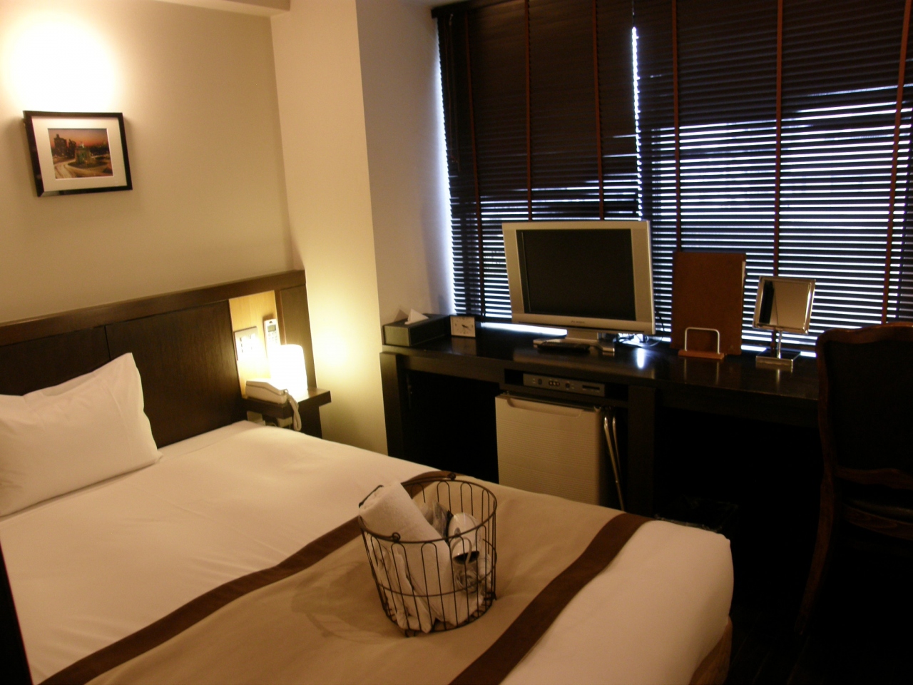 部屋は広くはないが、よく考えられた面白い作りで窮屈さは感じない。