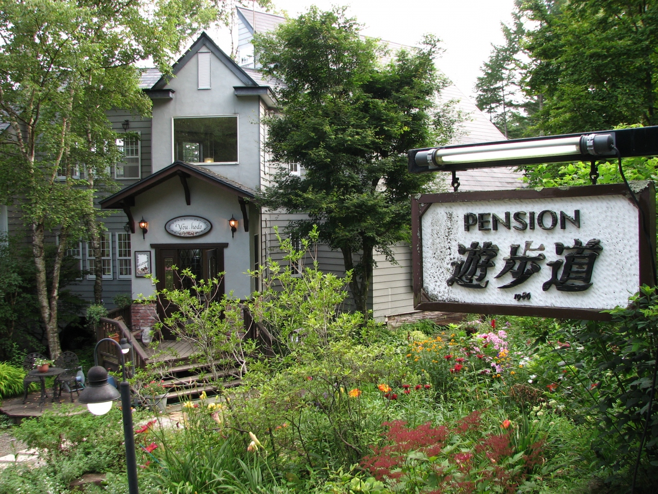 花盛りの季節にはペンション前での記念写真をお忘れなく!