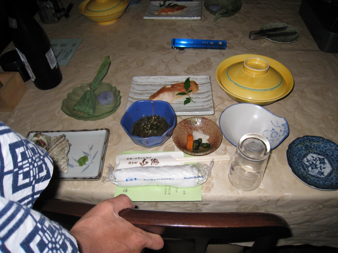 夕食時にちょんまげの宿主が全テーブルにあいさつに来てくれました。