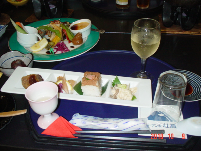前菜からものすごい品数でびっくり!イナゴの佃煮、苦手だったのですがおいしくいただけました。