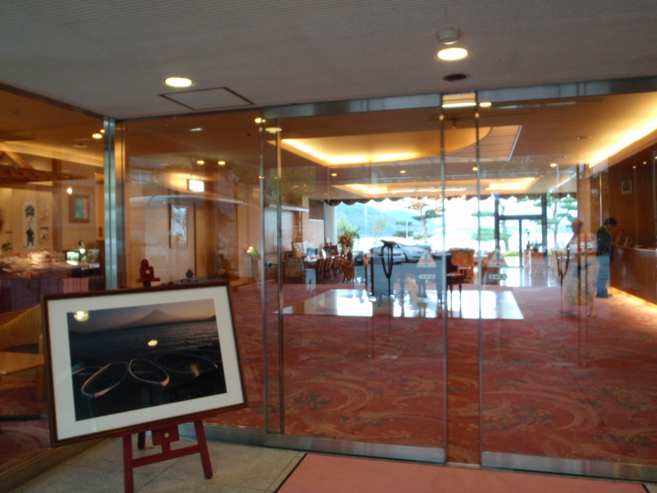 私たち(両親と一緒)はチェックインした日は曇っててまったく見えず、「富士山が見える宿」としてではなく「湖畔にある宿」という位置づけで滞在しました(…ということにしないと、納得できないガッカリ感)。
