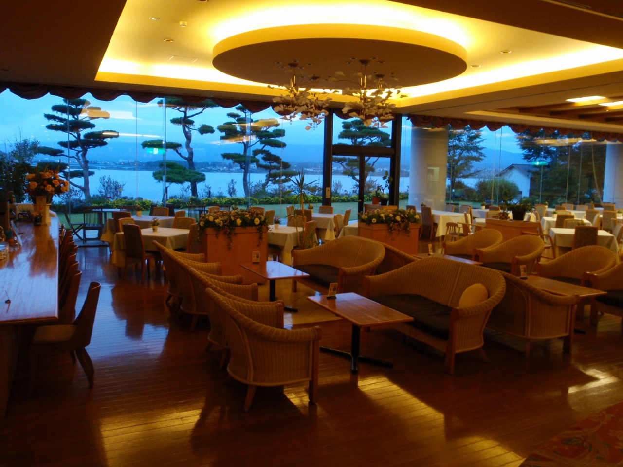 部屋食だったのは良かった。仲居さんも、若い方でしたが、とても一所懸命で初々しくいい方でした。料理も、先付けからメイン、デザートまで、全ておいしかったです。朝食のビュッフェは、わかさぎの天ぷらが特においしかった。