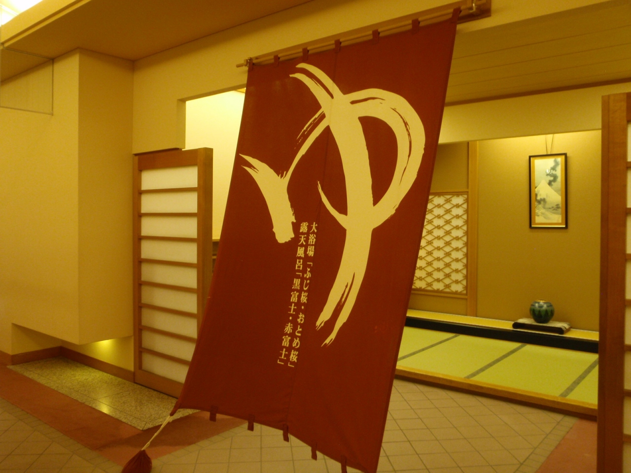 - うち、外、1種類ずつ。中規模。富士山が見える露天風呂は、油断すると客室から見えてしまう場所も…。