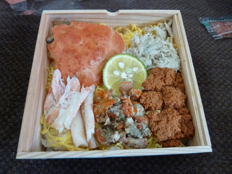 メスの松葉ガニを一匹丸ごと使った贅沢なカニ弁当