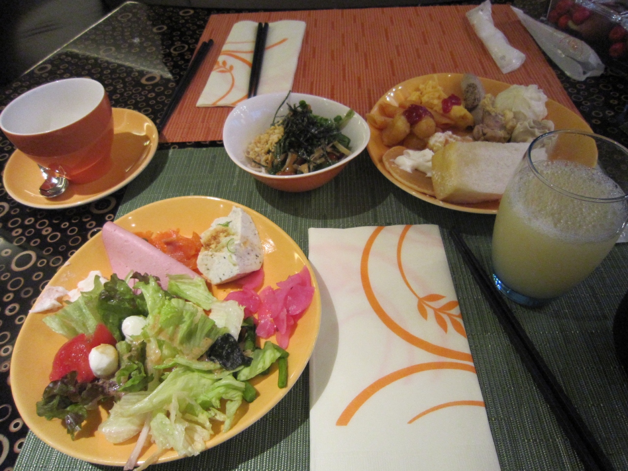 ホテル宿泊の楽しみはなんといってもビュッフェなので、期待してましたが、期待どおりでした。品数も多く、そば・パンなど和洋中どれもとてもおいしかったです。ただ、私たちは開店すぐに行ったのでよかったですが、少し多い時間だと待っている方が多かったように感じたので、早起きが肝心だと思います。