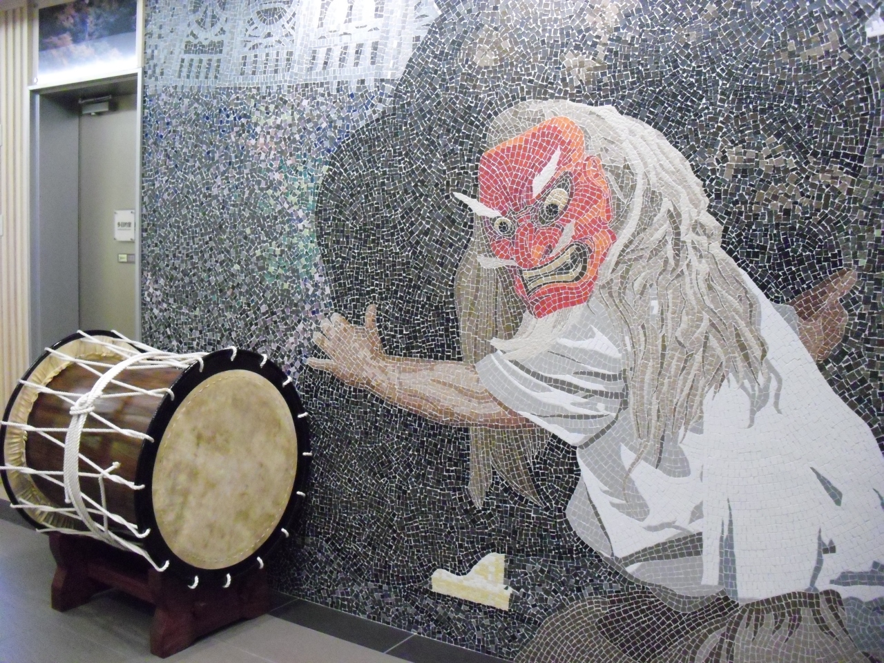 またホテルフロントの壁には高千穂の神楽が描かれており雰囲気がとてもよかったです。神楽が行われる高千穂神社までは車を使い5分程度です。歩いて行くには遠いかと思います。