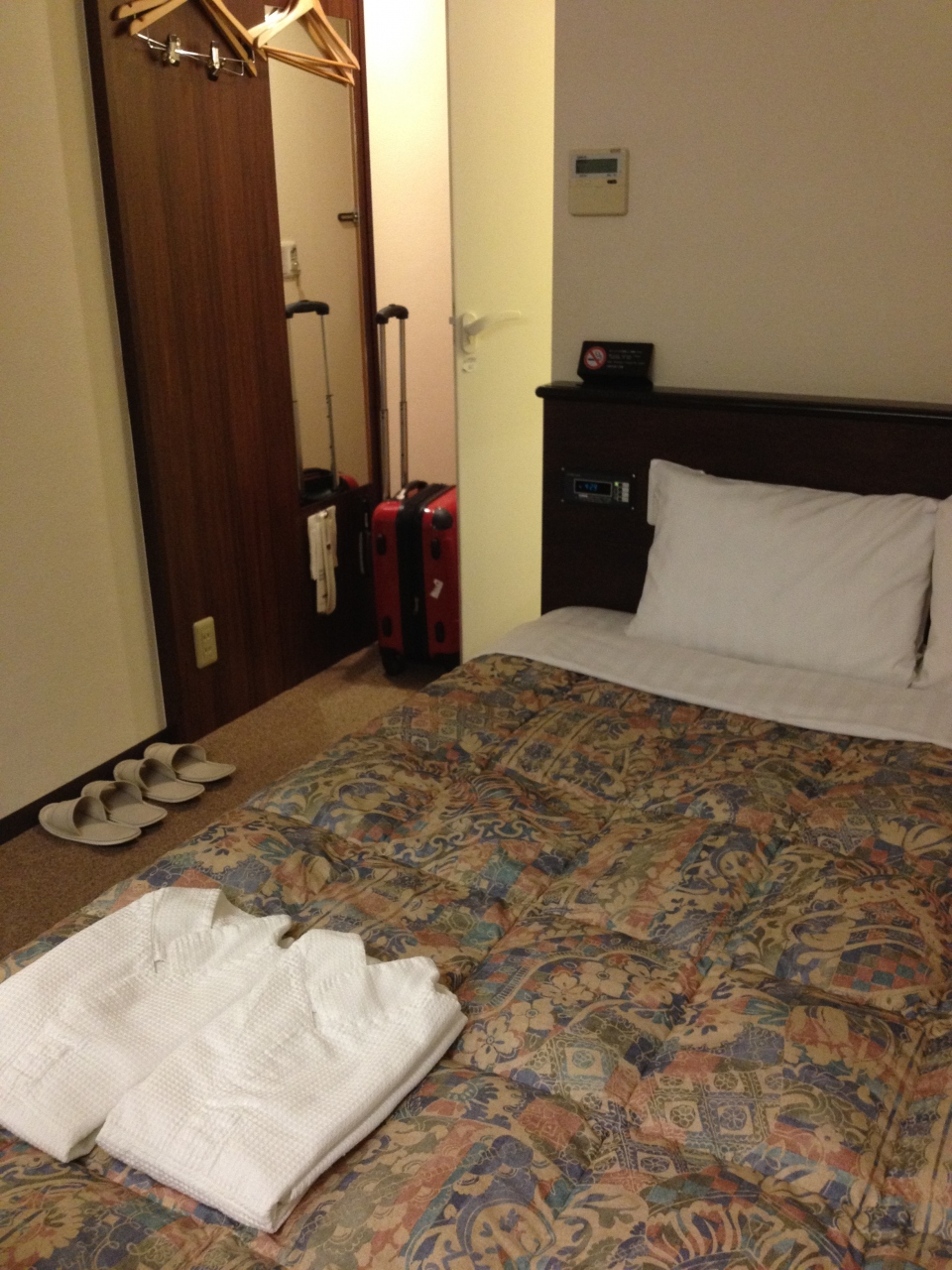 いかにもビジネスホテルという感じで、お部屋は狭いですが、清潔できれいだし、このお値段で朝食(バイキング)もつくのはお得だと思います。
