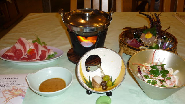 夕食も黒豚しゃぶしゃぶやきびなごの刺身など地元料理が楽しめます。