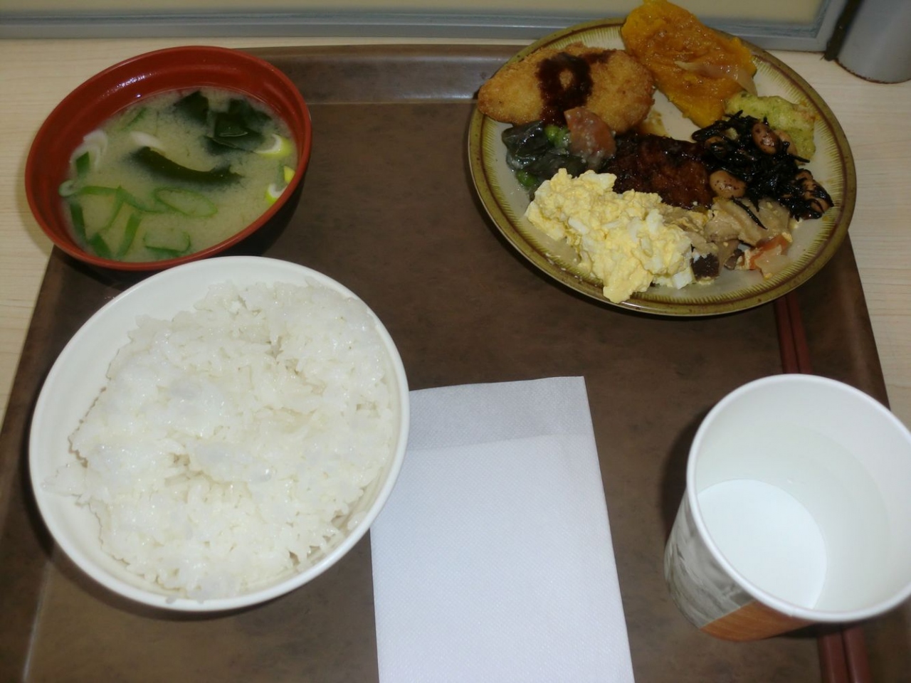 朝食は、バイキング方式でしたが、8時半までと終了がちょっと早く、終わりごろには、メニューが少なくなっていたのがちょっと残念でした。