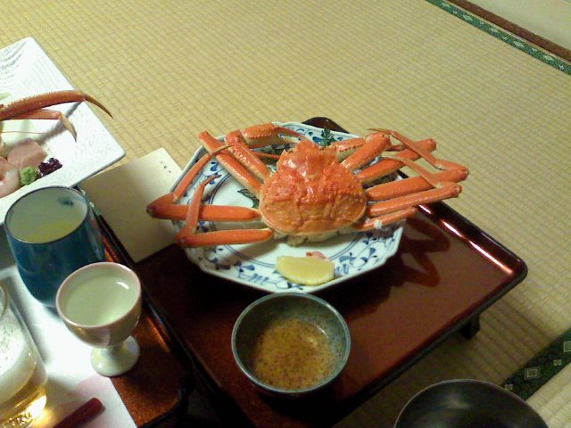 カニ刺し、焼きガニがついたフルコースを頼んだんですが、