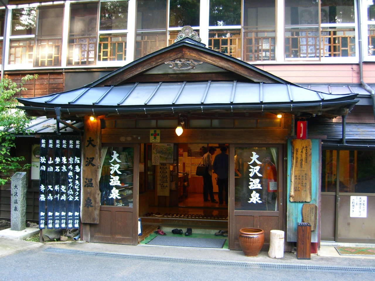 大沢温泉の敷地内に入るとまずは右手に高級旅館の「山水閣」その先に「自炊部」の風情ある建物がフロントで番頭に館内の説明を受けます。宿泊料は1泊2000円台、3000円以下で泊まれることが出来ます。また、なんと番頭が荷物を持って部屋まで案内してくれたのは驚きでした。館内には温泉がいくつもあり、売店も充実、自炊しなくても食堂まであります。露天風呂からの眺めの最高です。