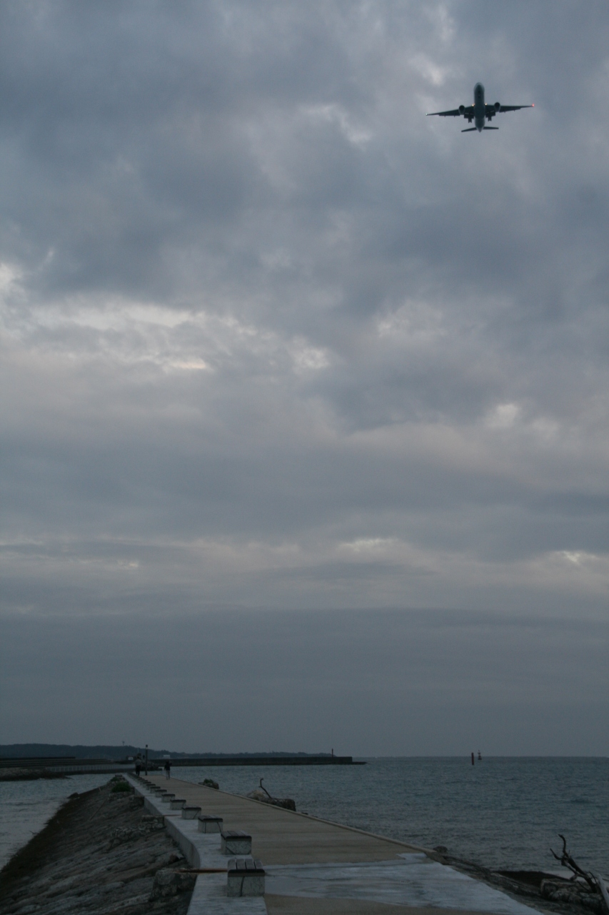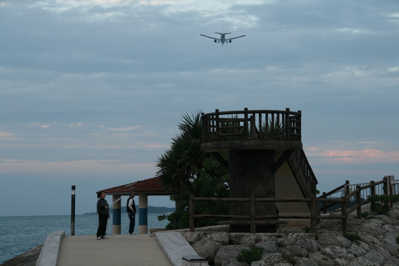 沖縄へ夫婦で旅行する為にインターネットでホテルを調べていたら、女房が良いというサザンビーチホテルを割安で予約できた。2月ということで時期外れでもためでしょう。ホテルのプールもビーチも利用できなかったですが、ビーチを散策してきました。ビーチを守る堤防まで橋を渡っていけます。那覇空港の滑走路の延長にあるので頭上を着陸態勢の飛行機が飛んでいきます。食事は夕食、朝食ともにホテルのレストランレイールでバイキング料理。ホテル宿泊きゃっくはビールかワインを1杯だけ500円で飲めます。さらに宿泊客はアセロラバーでジンか泡盛のカクテルを1杯だけ無料で飲めます。