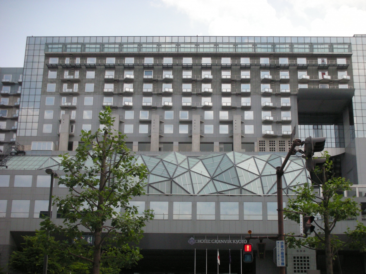 JRの京都駅ビルの中にあります。部屋は20平米以上あり広いですが、値段も2万円弱1泊かかりますので、ちょっと高いですね。線路側の部屋に泊まりましたが、電車の音がうるさくて、朝もゆっくり寝ていられませんでした。アナウンスの音が特にうるさいですね。朝食がついていて和食を食べましたが、あまり美味しくなかったです。