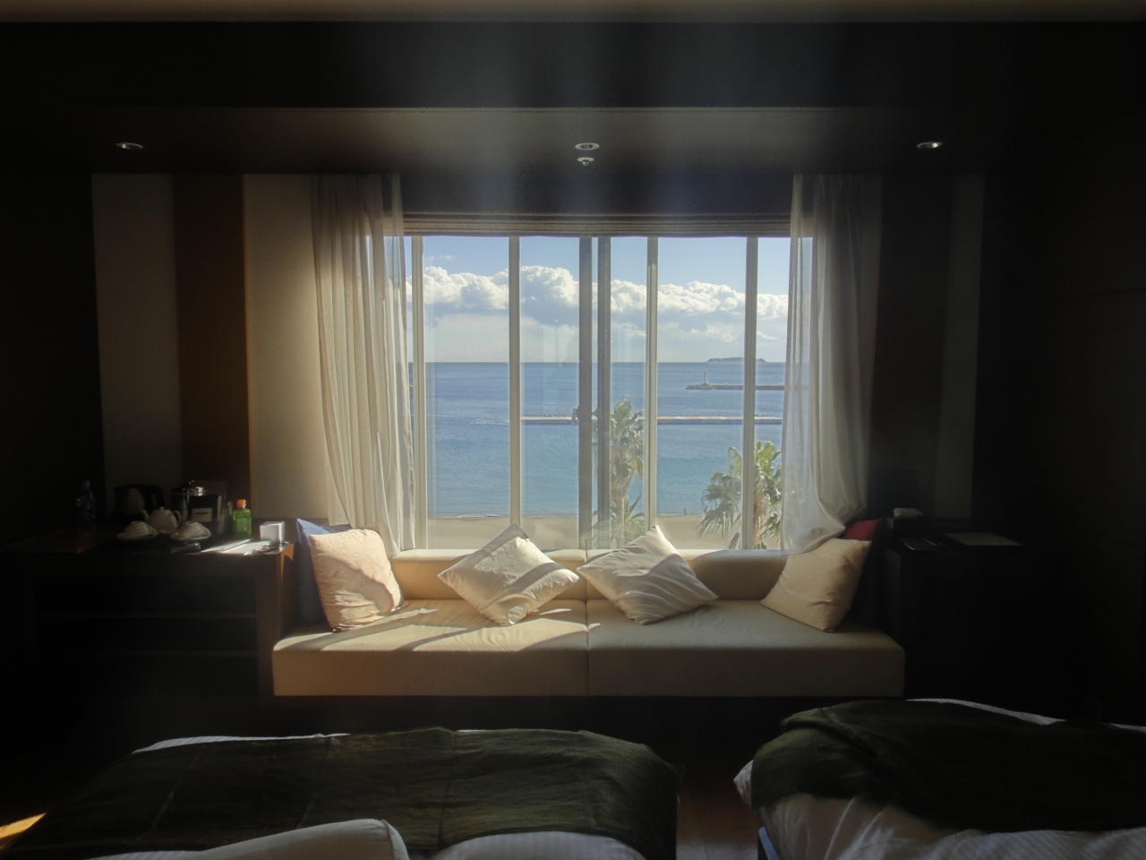お風呂を広く、高層階にあるため熱海を見下ろせて景色がいいです。