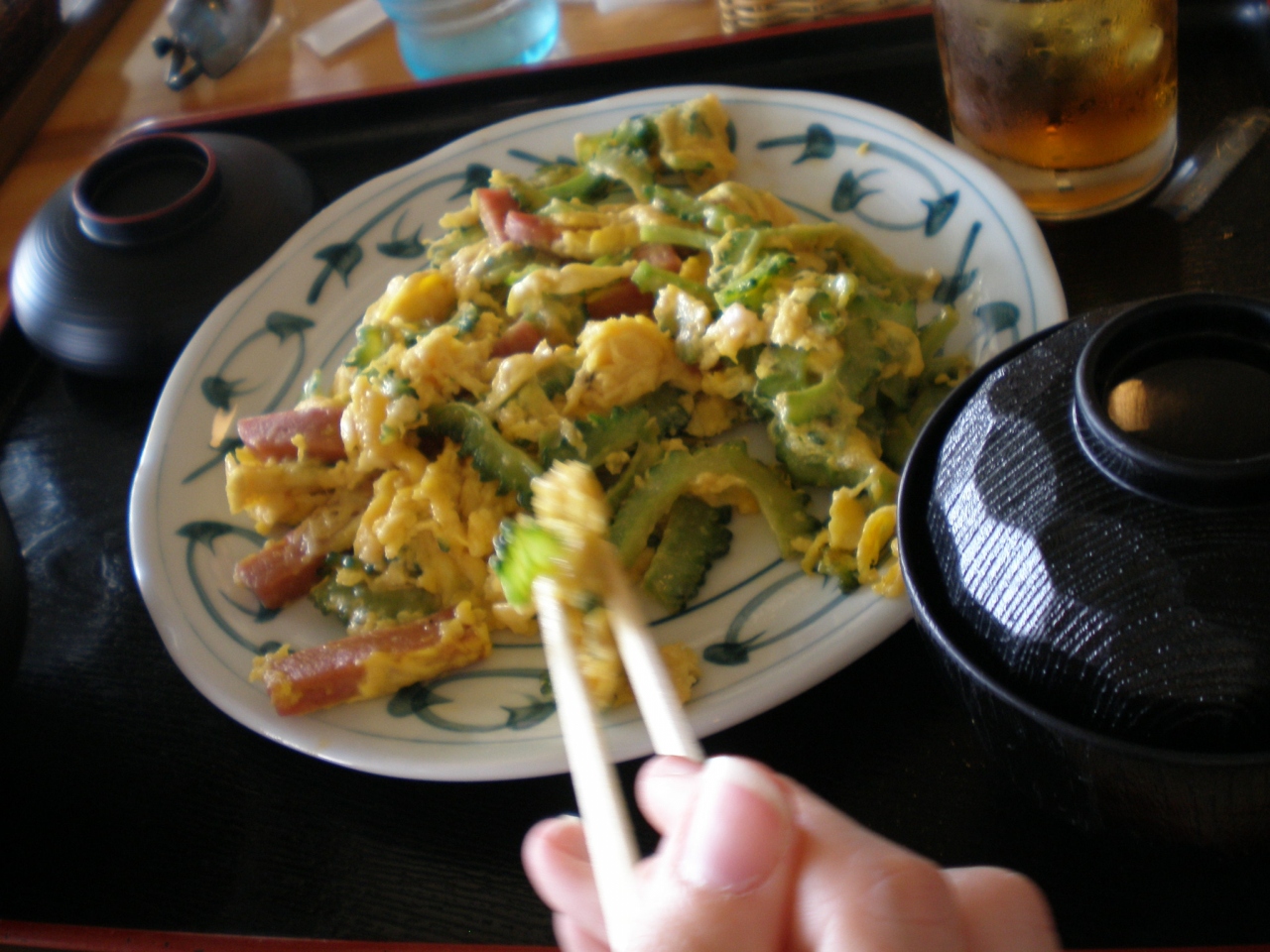 ゴーヤチャンプルー定食は800円で、一人では食べきれない