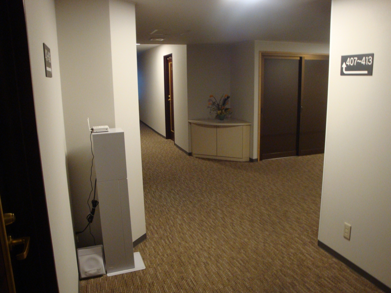 よくわからない扉があったり、天井が低かったり、ちょっと薄暗い部分があったりと廊下部分はあまり雰囲気が良いとはいえませんが、部屋やロビーは一昔前のビジネスホテルといった感じで、特に不快と感じる部分はありませんでした。部屋に空気清浄機が設置されていた点は評価できますし、ベッドも低反発マットレスで心地よいです。