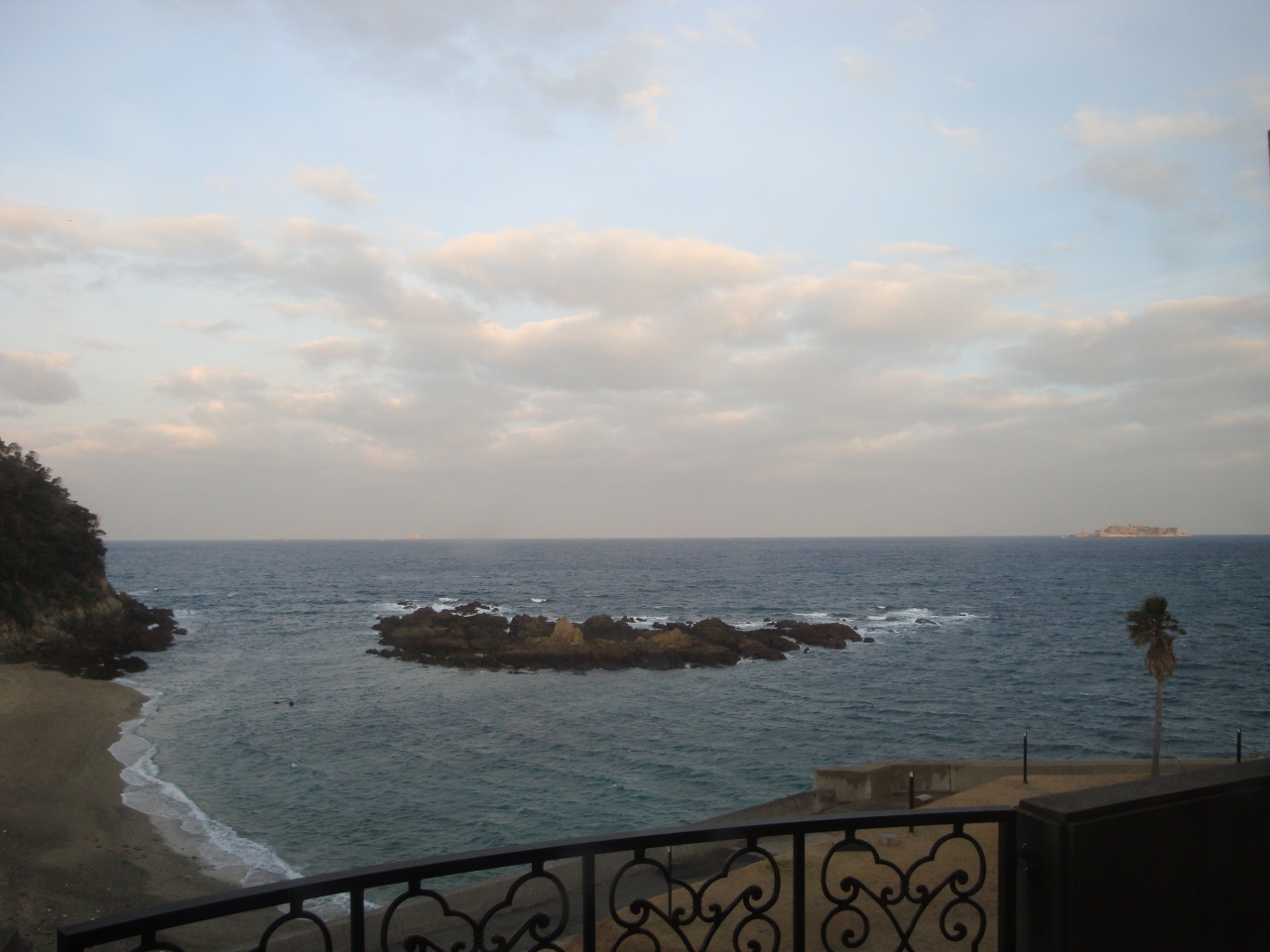 なお、建物は3階建てですが、特に視界を妨げるものがないので、部屋からは広々とした海と軍艦島の眺望が楽しめます。窓は西側を向いていますので、特に夏の夕暮れには美しい風景が楽しめるのではないでしょうか。