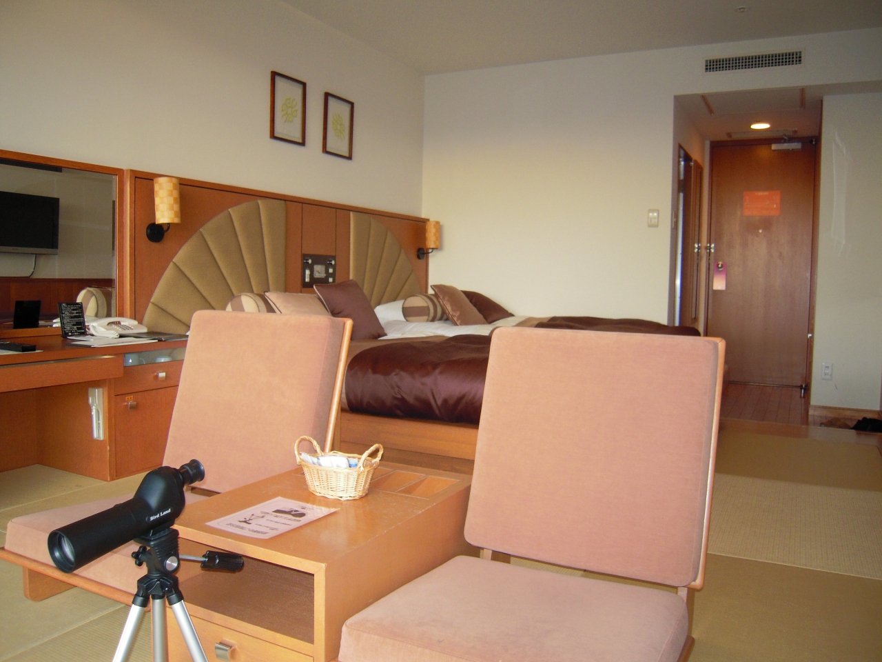 部屋からはサロマ湖が見えバードウォッチング用に双眼鏡が用意されていました。