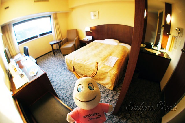 成田ビューホテルです。空港からの無料送迎バス以外に、成田駅、イオンとも結んでいます。時刻表があるので前もってホテルのウェブサイトなどで確認しておいた方がいいですね。写真は部屋の中ですが、インターネットの端子がベッド脇で電源は反対側のテーブル、またLANケーブルはいちいちフロントでサインして借りなければなりません。チェックアウト時に返却。めんどくさい。