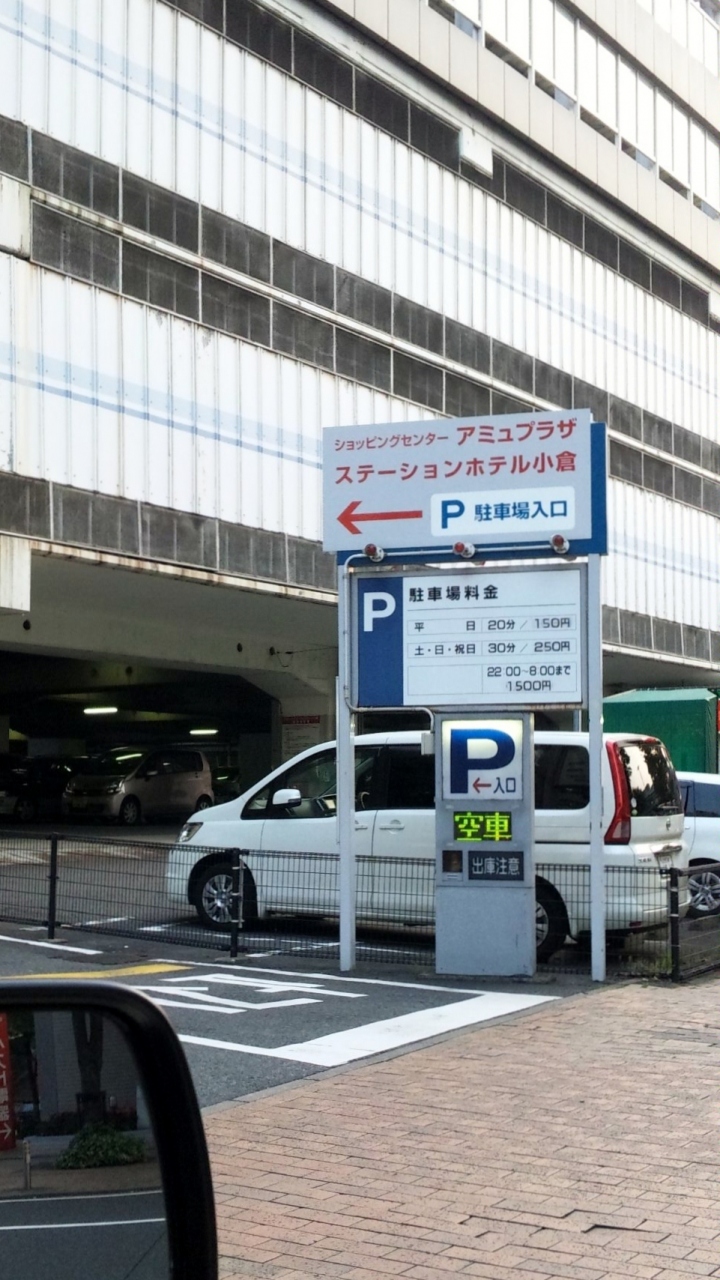 ただ駐車場はホテル専用ではなくて、アミュプラザ小倉と一緒になっています。入口がわかりづらかったので車の曲り口の看板の写真を載せます。バジェットレンタカーの隣です。小倉駅北新幹線口から入るのですが、看板が比較的小さく見逃してしまうことがあるので要注意です。